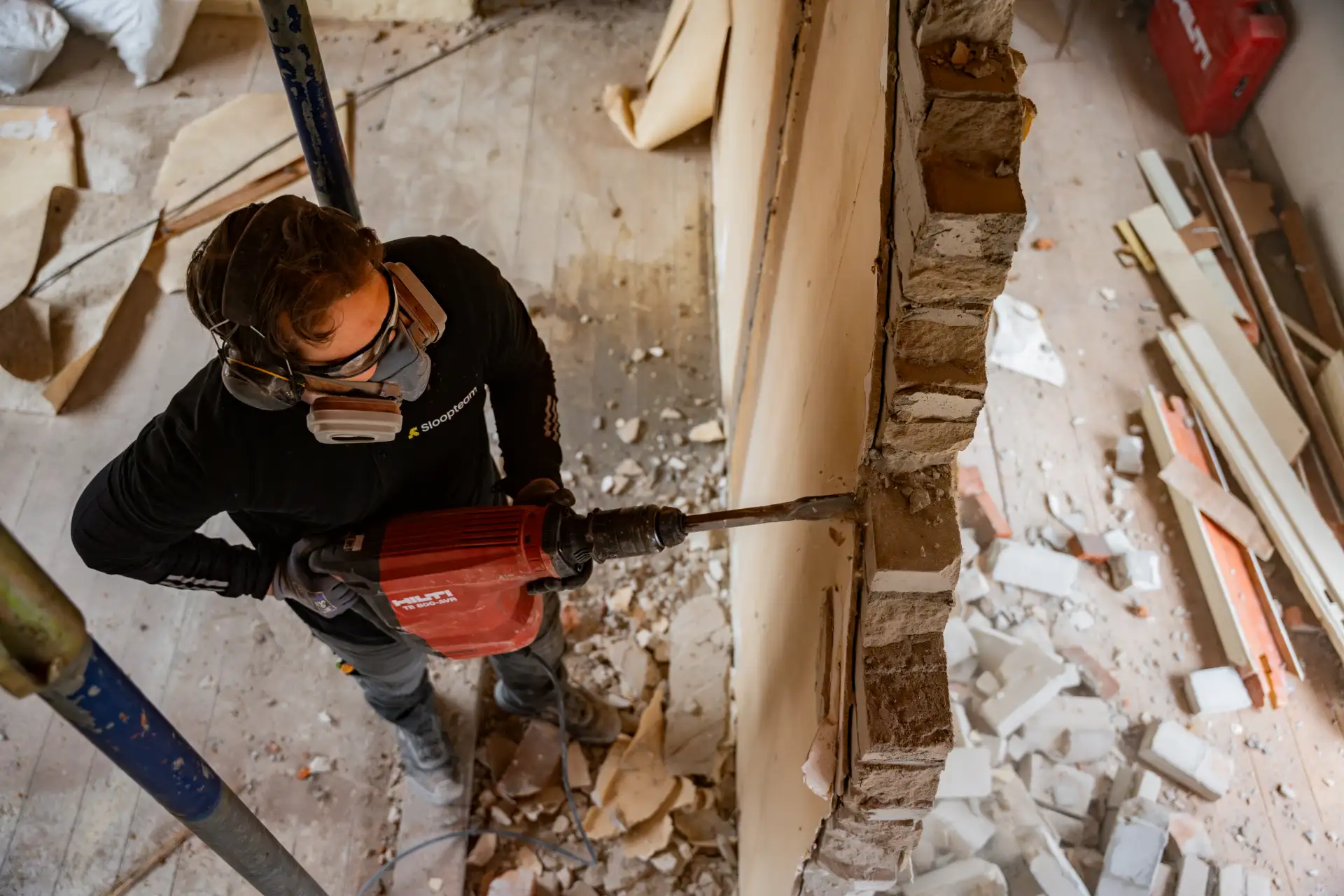 We slopen niet grof, maar gericht. Alles wat weg moet, gaat weg – wat moet blijven, blijft heel. Of het nu gaat om het strippen van een volledige woning, het verwijderen van vloeren, of het slopen van een keuken of badkamer: we pakken elk project zorgvuldig aan en houden rekening met bewoners, buren en de omgeving.